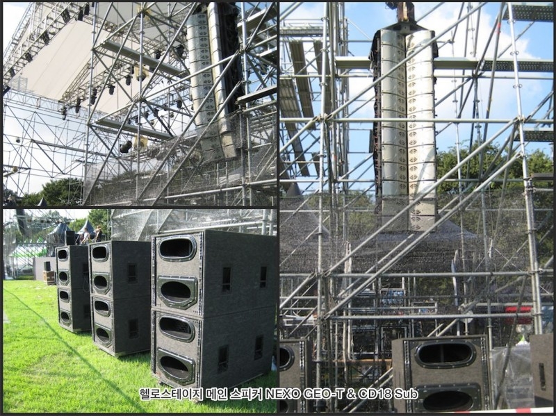 슈퍼소닉 소닉스테이지에는 Main LR - NEXO STM M46 24ea, B112 24ea / Center Fill - STM M46 / Sub - S118 30ea의